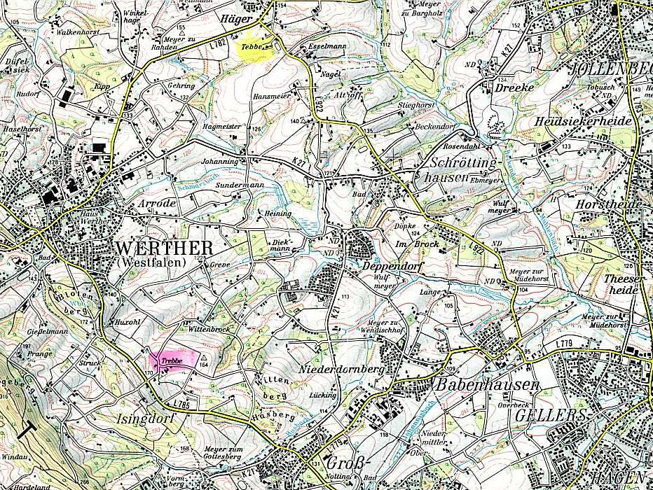 Ebenso in der Nähe Bielefelds, in der Gemeinde Jöllenbeck, gibt es einen Hof mit dem Namen Trebbe. Heute bewirtschaftet ein Herr Rösener, der mit einer geborenen Trebbe verheiratet ist, diesen Hof. *5)